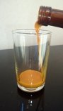 色はオレンジジュースを濃くした感じで、少しどろっとしています。